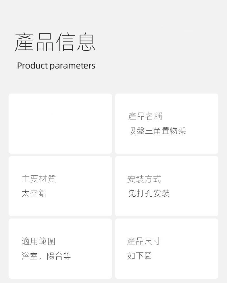 2分鐘前自帶吸盤,可隨時移動重復使用的置物架 免打孔廚房浴室衛生間三角置物架多用途壁掛收納架毛巾架 - 【超夯下殺】買一送二,共三入組 NT$998