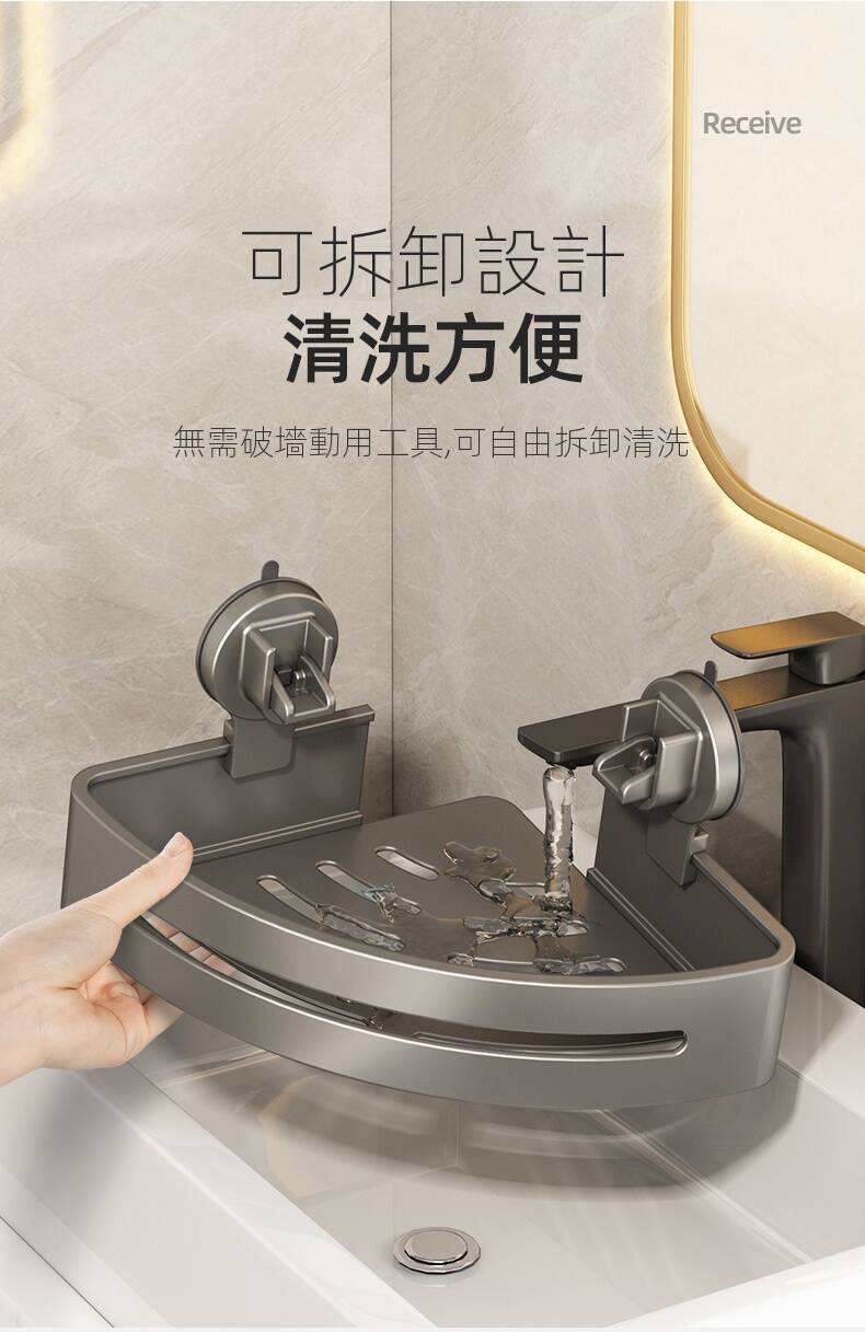 12分鐘前自帶吸盤,可隨時移動重復使用的置物架 免打孔廚房浴室衛生間三角置物架多用途壁掛收納架毛巾架 - 【超夯下殺】買一送二,共三入組 NT$998