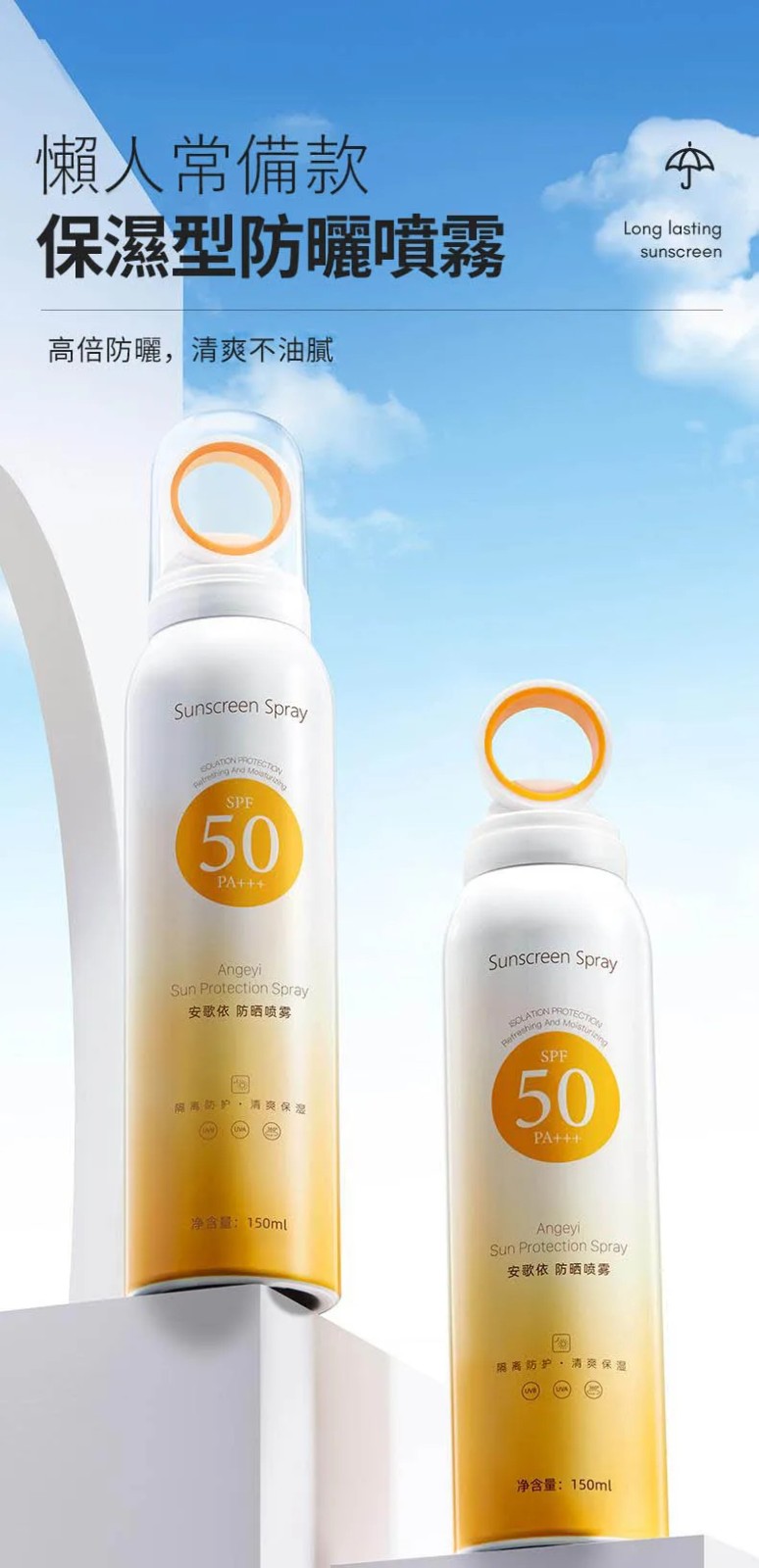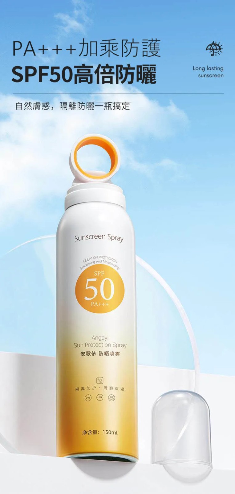 20分鐘前安歌依光圈防曬噴霧,細密噴頭設計 噴頭360°可旋轉自然膚惑,隔離防曬一瓶搞定 - 僅此一天「安歌依光圈防曬噴霧」8入72%用戶的選擇!NT$1598【限時免運】