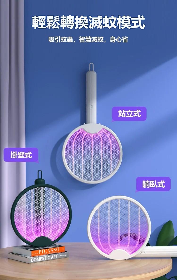 2分鐘前熱賣 四合一多功能電蚊滅蚊拍,立式/壁挂/手持式/可摺叠,雙效自動滅蚊! - 【今日限定】3入組-NT$1490