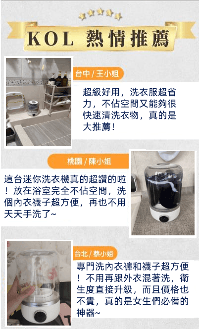 15分鐘前玉如阿姨獨家推出TECO迷你洗衣機,一鍵啟動解放雙手含銀離子持久抑菌,小巧機身功能齊全整機防水防潮防濕 - 內衣內褲分開洗 限時特惠 二入組NT$1990