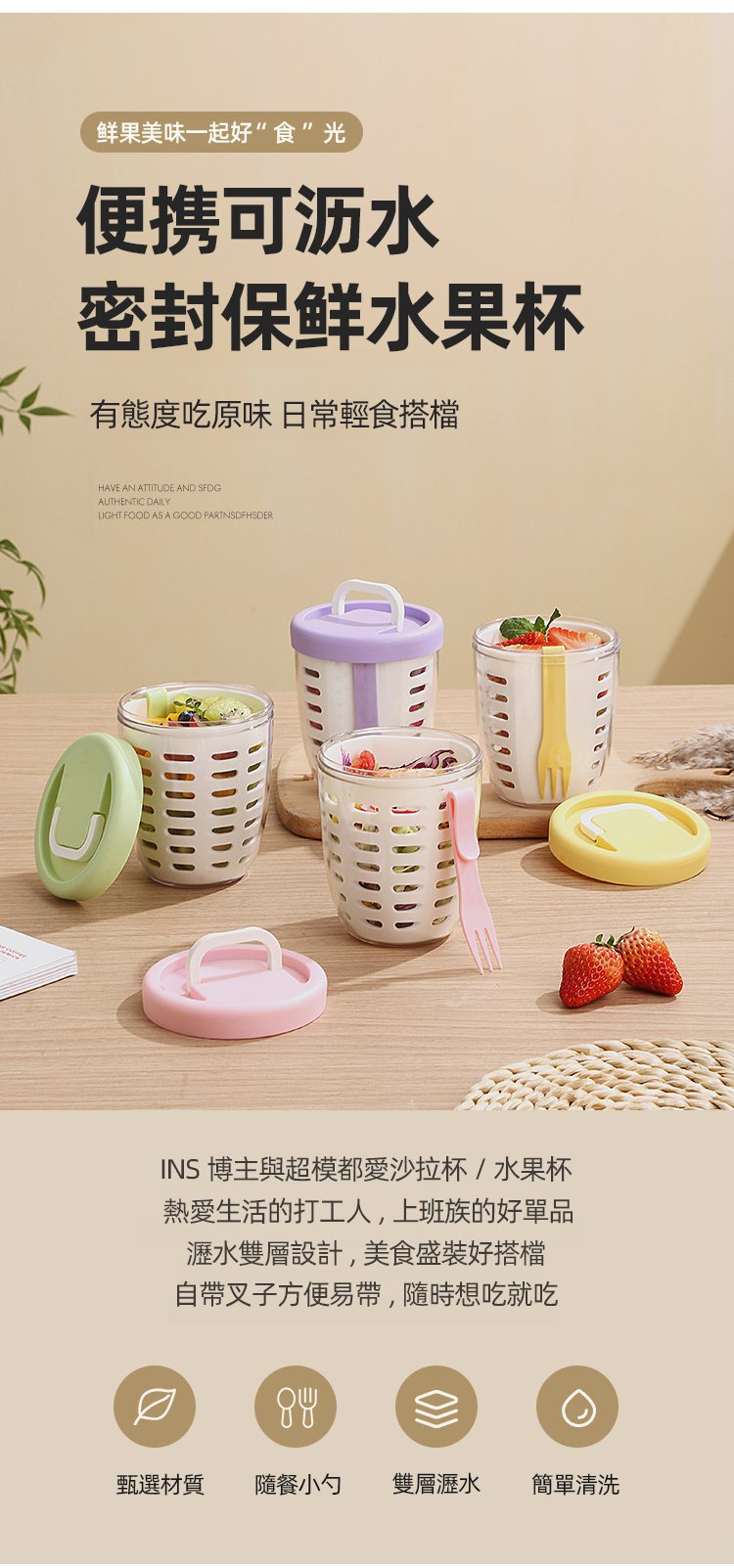 4分鐘前便攜可瀝水密封保鮮水果杯 - 買三送三1299